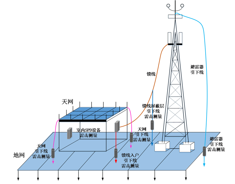 3、 监测通信铁塔馈线引下线、馈线屏蔽层和避雷器的雷电数据;